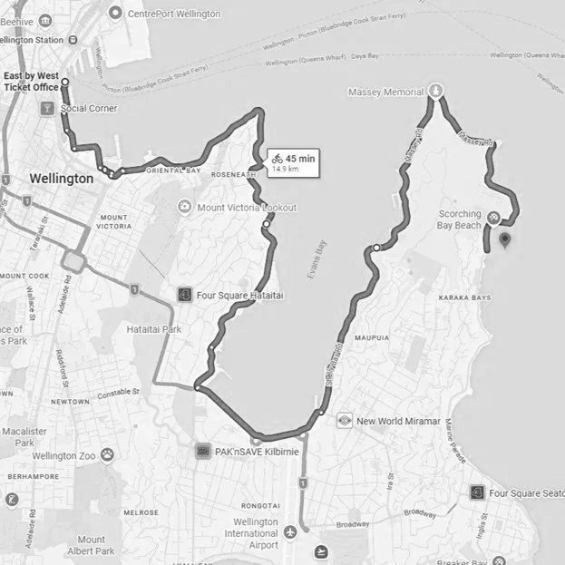 2 hours - takes you further out to Evans Bay and the Miramar Peninsula - 20km return